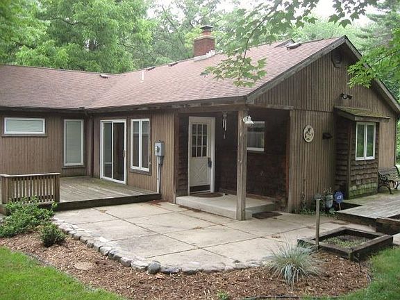 What a great location on Culver's East Shore Dr! 4 acres +/- of serenity with lots of wildlife for the outdoor lover. The deer and turkey are plentiful. Mature trees and open pasture for the kids to play and roam. Great spot to camp out too. This 3 bedroom, 3 bath home is much larger than it appears. Almost 1800 sq ft of living space. Kitchen over looks the living room and dining room. Sliding glass doors in the dining room lead you to a large deck and patio for outdoor entertaining. The detached 3 stall garage is heated and has a finished room above. Use it as a bunk room, office, man cave, or storage. Don't let this one slip by.