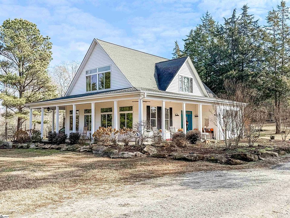 Welcome home to this beautiful 3-bedroom, 2-bath modern farmhouse set on 42+ acres of lush, rolling pastures, mature, shaded woods, and a picturesque creek nestled among the trees. Private and serene, yet just minutes from the best of Fountain Inn and Simpsonville, this property offers the ideal blend of country living and convenience. Inside, the thoughtfully designed home features a spacious primary suite with a large sitting room, perfect for working from home, a nursery, or a quiet retreat. Two additional bedrooms and a second full bath provide plenty of space for family or guests. Outside, explore 3 separate horse pastures, each with access to water, and a barn with 3 stalls — offering room for horses, animals, and endless outdoor adventures. With 42+ acres of open and adaptable land, this property provides a rare opportunity to shape it into the home, farm, or retreat of your dreams, making it truly your own.