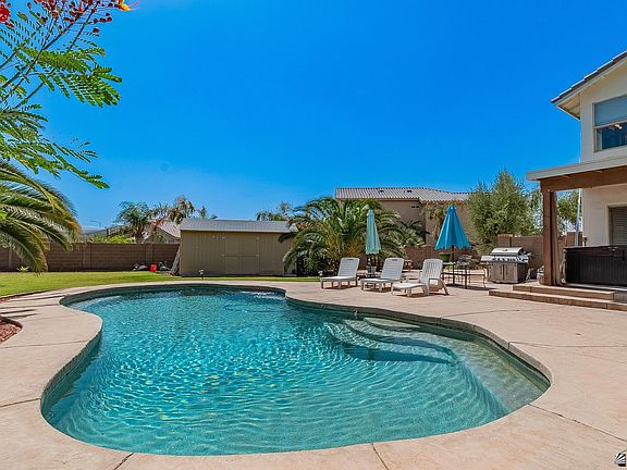 Beautiful 3,435 sq ft two-story home, 5 bedroom,3 bath home in the highly desired Falls Ranch subdivision. Located on a cul-de-sac ! 4 bed upstairs + 2 baths, 1 den/bedroom,1 bath on main floor. Impressive primary bedroom w/ ensuite. Spacious living, and dining area. Open kitchen, family room w/french doors to covered patio,Hot tub & overlooks pool and garden area. Over 1/3 acre lot with an in-ground swimming pool and ample room for garden and outdoor activities. 10x20' shed. RV pad behind DBL gates.