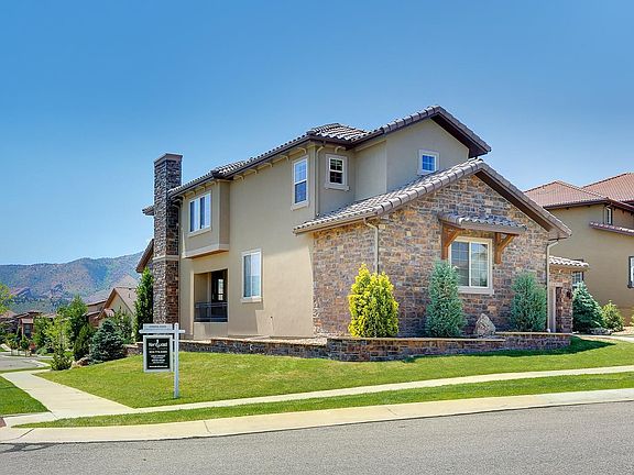 Exclusive Toll Brothers home located on a large lot w/ mountain views & over 5100 square feet finished! As you enter the home, you will notice the beautiful turret w/ crown molding, a large foyer & open floor plan. The main floor includes the family room, oversized kitchen w/ a walk-in pantry & eating space, guest bedroom, laundry room, & main floor study (w/ built-in bookshelves & reading nook). There are two covered patios off the main floor. The second floor maintains the open feel w/ an open railing & staircase. The master includes a large sitting area, double sided fireplace, 5 piece bath, mountain views and a tranquil place to retreat after a long day. Three beds & 2 secondary baths complete the upstairs. The finished basement offers an open rec space that can used as you wish. A non-confirming 6th bedroom, separate gym & garden level windows complete the space. The backyard offers maintenance free turf w/ putting green. This home is move in ready and features new carpet.