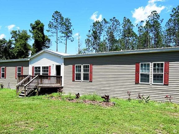 This spacious, attractive 4 bedroom, 3 bath home on 5.5 acres was built in 2018 and is nearly new. Under a metal roof, it's set well back from the road (very little passing traffic), and bordered by forest on three sides. The home site offers comfortable privacy, and plenty of room for gardening and other outdoor activities. The front yard has a couple of acres of grass suitable as pasture for a horse or two. Located 5 miles north of High Springs, and 0.3 mi off US 441-41 near O'Leno State Park, it's conveniently half way between Gainesville and Lake City. Enjoy a wood-burning fireplace, a gas range, and a large back deck well-suited for entertaining. The metal garage/workshop with concrete floor is 2 years old and is 18x25 feet (450 square feet of interior space) with a single-car lean-to attached. The master suite is on one end of the home, and three bedrooms and two baths are on the other. In between, as open space, is the living/kitchen/family room group. TV reception is high speed Internet. Country living, but just a few minutes to the amenities of High Springs.