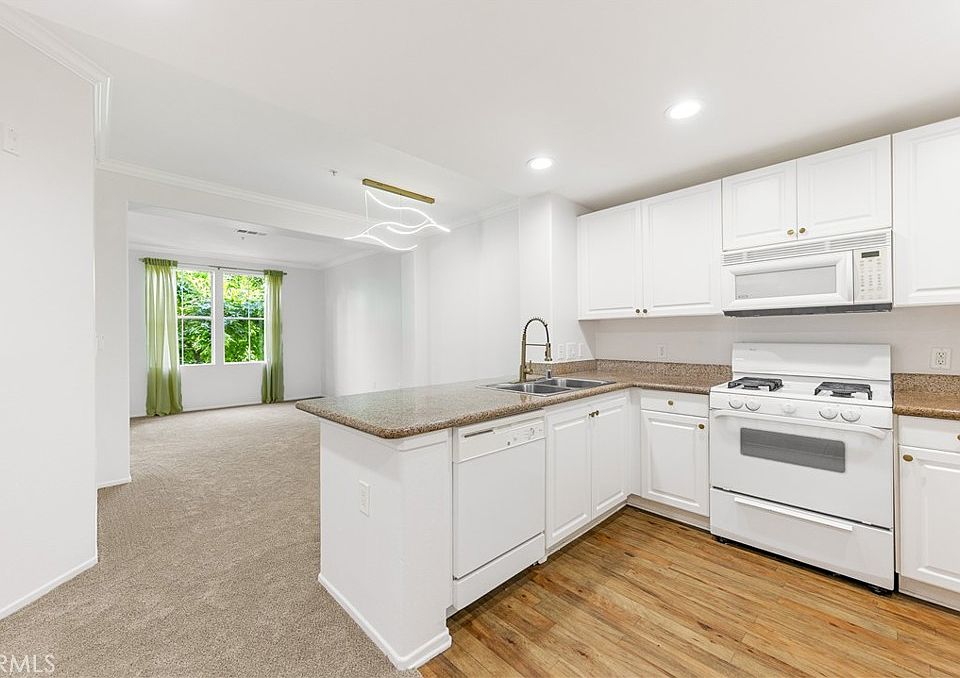 Beautiful Dorchester model located on the 2rd floor with a courtyard and fountain view! This one bedroom one bathroom home features cozy den that could be used as an office, granite counter tops, in-unit stackable washer and dryer, his and her sinks in the master bath. Enjoy soothing breeze from the a large private balcony! The sophisticated living of the Watermarke community offers bounty of amenities including concierge services, business and fitness centers, movie theater and billiards rooms, 3 pools, 4 spas, and an indoor basketball and tennis courts. Gated parking structure with 2 assigned parking spots. Refrigerator and stackable washer and dryer are included in the sale. Come see this cozy condo and make Watermarke your home!