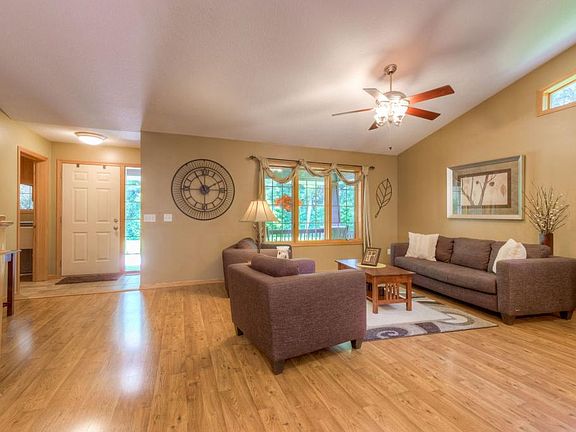 Stunning Custom built home, immaculate condition. Expansive private lot, professionally landscaped, surrounded by mature pine trees. Maintenance free deck to enjoy nature and entertain! Well planned open concept main floor and vaulted great room. 2-tiered Silestone Center Island with seating room, high end SS appliances and large pantry. 2 BR's one level. Large inviting family room w/ floor to ceiling fireplace. Master BR en-suite has large jetted tub, dual sinks, large walk in shower and storage galore. Unfinished 4 level for an amusement room or 5th BR (egress window is already installed) This one is must see!
