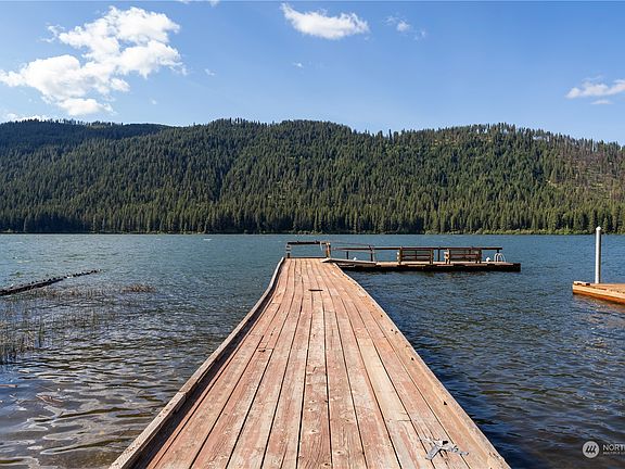 Escape to Fish Lake! This well-built, single-level chalet features 3 bedrooms and 2 baths, perfectly situated across from the community's private beachfront, dock, and BBQ area. Enjoy the main cabin's sunny picture windows, vaulted ceilings, and a primary master suite with a walk-in closet. The two guest bedrooms offer ample space for overnight guests. Downstairs, an extra deep two-bay garage and adjacent shop provide plenty of room for toys & projects. The original fixer cabin includes a sizable kitchen/family area, one main-level bedroom, and attic sleeping space. Fish Lake offers year-round recreation with nearby hiking, skiing, and snowmobiling trails, and its unique peace and tranquility are simply magical.