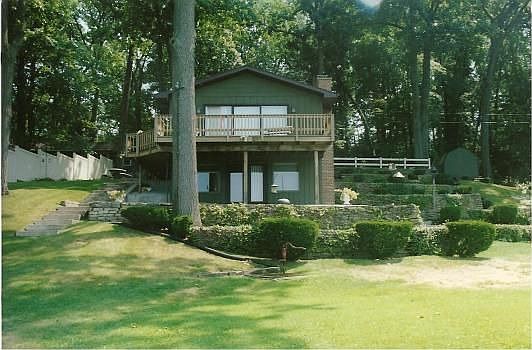 Very quiet setting on all sports Tamarack Lake. Beautiful location with mature trees and wonderful full lake views. Plenty of privacy with 2 lots, almost 3/4 acre and 108 feet of lakefront. Tamarack Lake is a private 125 acre lake with only 16 homes and Camp Fort Hill across the lake. The fishing is great! Home features 2 bedrooms, 2 baths, living room with gas fireplace & sliders to a deck, main floor laundry, family room in finished lower level with gas fireplace walks out to a patio lake side, central air, 2 car garage, shed, additional stone parking, terraced yard, cement walkway and wonderful landscaping. Stove, refrigerator, washer, dryer, dock and paddle boat included. Pontoon boat is a 2005 with only 10 hours can be purchased separately. Age of home is an estimate. Call Sue Roach at 269-625-3503 for details or to schedule a showing.