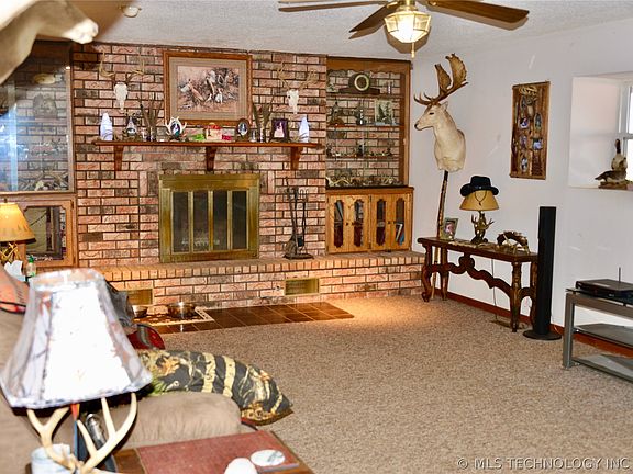 Tree lined drive welcomes you to this peaceful 160 acre ranch m/l. 3 bed/2/1 bath, 3188 sq. ft. all electric brick home. Wood burning fireplace, attached 2 car garage. Updated kitchen, formal dining, huge sunroom w/access from the dining and master bedroom. Rooms are spacious w/lots of storage. New roof in 2015. House has some updates in progress that need completed. 16' x 20' shop bldg. w/electric. Land is fully fenced, 3 ponds. Mature pecan & mulberry trees. Large hay meadows. Sells in “as is” condition