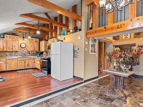 Nestled on 5 peaceful acres just outside Oakford, this unique 4 bed, 2 bath home offers a rare blend of character, history, and natural beauty. Once an old barn, the home was thoughtfully converted and partially built into the hillside, creating a cozy, energy-efficient space that’s been lovingly maintained by the same family for over 40 years. Features include a gas fireplace, marble tile entry and dining area, claw foot tub, and cedar siding. Enjoy the sights and sounds of nature with wooded areas, a dry pond (expected to refill with rising water table), and frequent wildlife visitors. The property boasts 4 apple trees, established asparagus and strawberry plants, a garden area, and a screened-in gazebo—ideal for quiet mornings or evening gatherings. Metal roof installed 2018–2019. Detached 1-car garage. City water is available for connection at buyer's expense. Located less than 10 minutes from Petersburg and just 30 minutes from Springfield’s west side, this is a one-of-a-kind country retreat you won’t want to miss!