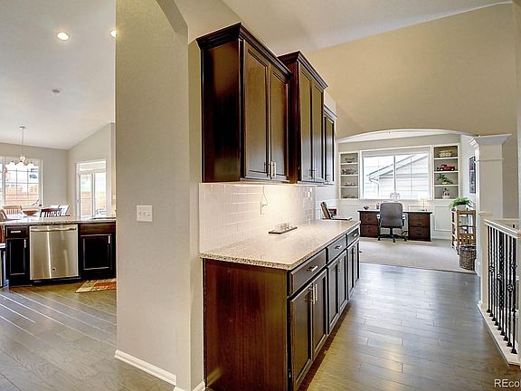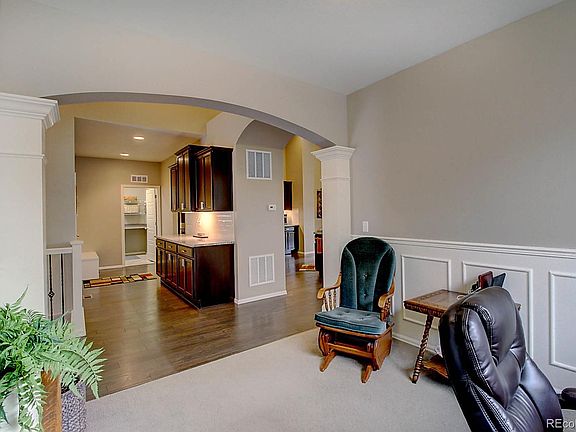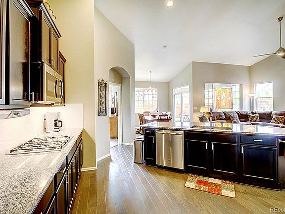 Welcome to this wonderful home with many upgrades in sought after Copperleaf neighborhood! Stunning ranch with open floor plan includes updated LED lighting and a cozy gas fireplace with automatic blower to warm your home on cold nights. The kitchen features double ovens, gas cooktop, tiled back splash and a huge island for entertaining family and friends. Don't miss the butler's pantry featuring additional cabinetry and countertop space! The kids will enjoy the playroom/family room in the finished basement. The master retreat includes a private full bath with barn door and a walk-in closet. The extended covered patio is perfect for family gatherings. The oversized 3 car garage has auxiliary heat and room for a work bench. This must see family home is in Cherry Creek School District and is close to E-470, DIA, shopping and restaurants! Call now to schedule your personal showing!