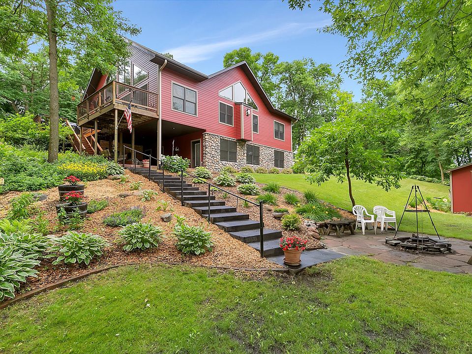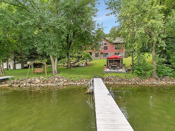 A little piece of Heaven just a short drive from the cities! Imagine enjoying your days at the lake! Custom built walk-out rambler situated on a picturesque 1.5acre wooded lake lot - w/ 150Ft of shoreline on Big Lake! As you enter you will take notice of the vaulted ceilings and wrap around Pella windows. Open concept perfect for entertaining. Gather in the kitchen around the large island or relax by the fireplace in the spacious family room. Main level opens to the beautiful sunroom that walks-out to the deck. Main level bedroom w/ private full bath & large WIC. Main floor laundry. Lower-level features lakeside daylight lookout windows & walk-out to the covered patio. Large family room, two bedrooms, + den. Heated oversized 3 car attached garage. 41x36 shop with living quarters above. 30amp camper hookup. Lakeside offers 2 docks, firepit, picnic area, sauna, & access to drive golf cart from garage down to the lake. Lake property sure to impress! Call to schedule your private showing