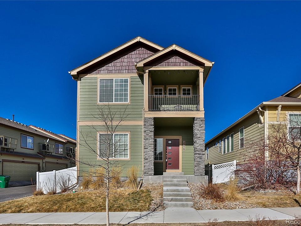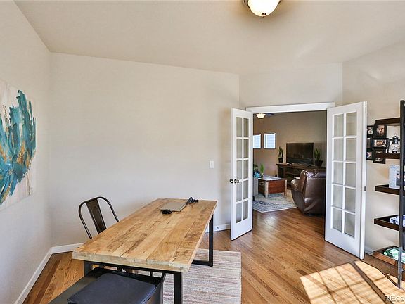 Beautiful exterior craftmanship with stone columns, wood siding, and decorative entrance door welcome you into this lovely home. Walk into a bright open floorplan with hardwood floors throughout the main level. To the left of the entrance, youll find a bright and spacious office with French doors and a large window pouring in lots of sunshine. A half bath with pedestal sink conveniently follows the office. An open and bright living room walks out to a side yard with concrete patio perfect for summer barbeques. The dining area is open and perfect for large dinner gatherings. The large open kitchen has hardwood flooring, granite countertops, extra-large 42" cabinets, pantry closet, and stainless-steel appliances. A center island equipped with cabinets, dishwasher, double sink, and seating space has large granite slab for more workspace. The kitchen also has recessed lighting and pendulum lighting above the island. On the fully carpeted upper level youll find a full bath with a dual sink vanity and bath/shower combo, tile floors, and laminate countertops. A spacious laundry room with washer and dryer is conveniently located on the upper level. Bedrooms 2 and 3 both with nice sized closets and bright windows follow the laundry room. The master bedroom has vaulted ceilings, a ceiling fan, and a walk-out to its own private balcony with spectacular mountain views! Adjoining the master bedroom is the large master bath with walk-in closet, 2 separate vanities, and a large shower with dual showerheads. Downstairs is the cozy garden level basement with carpeting throughout. Basement level family room has recessed lighting, storage closets, and a full bath. Bedroom 4 in basement has garden level window and large closet. A bonus room in the basement that can be a 2nd office, exercise room, craft/hobby room or whatever your heart desires.