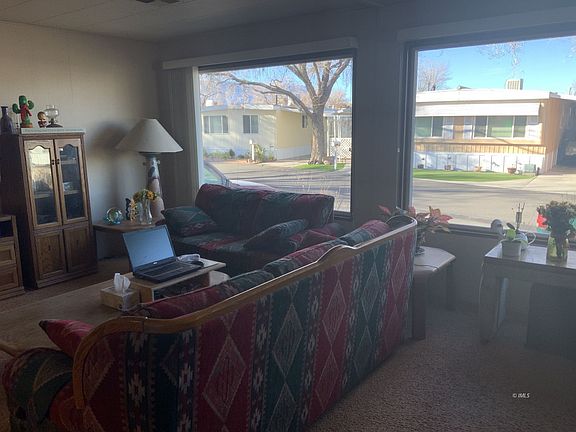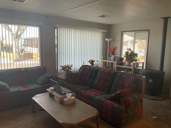 This tidy mobile home is located in the Sr. park of Highlands Mobile Home Park. Double pane windows, open floor plan, pellet stove, cast iron propane stove and updated kitchen appliances. The home has a spacious master bedroom with sliding door to the back yard. Walk in closet and walk in shower in the master. Roof was redone 2.5 years ago along with a new cooler. All parties to be aware that the home has a F/A heater but that the seller has not used for heating in many years. Pellet stove and propane stove are main source of heat.
