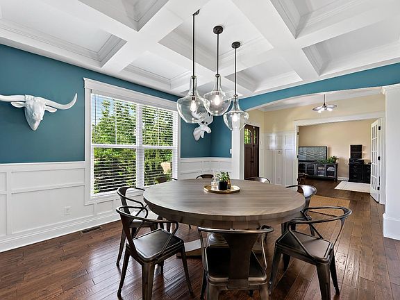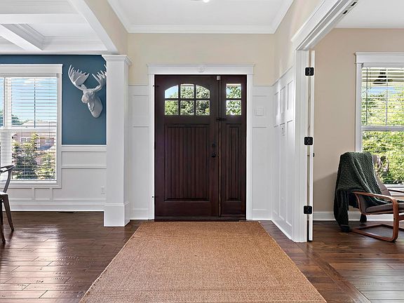 Welcome home! This elegant 2 story is located in Valparaiso's highly desirable Harrison West neighborhood. With modern updates, this home rivals new construction, but ALSO offers an established manicured yard, mature trees, and all of the comforts of an existing home. Gracious foyer welcomes you to an open concept main level with hardwood floors and coffered ceilings throughout. Gourmet island kitchen offers granite tops, full appliance package, & breakfast room with patio access. Great room boasts backyard views and a stone fireplace. Home office with french doors, butler pantry, formal dining room, powder room, and laundry room complete the main level. Upstairs, retreat a large main bedroom suite, bedroom 2 with ensuite bath, and bedrooms 3 and 4 with Jack & Jill bath. Host game night in your newly finished basement, complete with wet/snack bar & bathroom w/custom tile shower. Even more equity potential in additional unfinished square footage. Oversized 3 car garage, concrete drive.