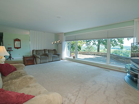 This unique property offers a custom built stone rancher with an expansive attached multi-level garage on this 27+ acre property. The 5099 sq. ft. home which includes a finished basement is expertly tied into the garage area, which is in excess of 6,000 sq. ft., for easy access yet separate enough that the garage space could be utilized for a small business (check local zoning) or to show off your car collection or other toys. The Home features a spacious eat-in kitchen with island, formal dining room and a formal living room with a marble fireplace and a wall of windows to enjoy the magnificent views. In addition, the main level includes a family room with fireplace, master suite, two additional bedrooms and a laundry room/ mud room. The huge finished lower level boasts a game room with a full wet bar, rec room, bathroom with a steam bath and Hot Tub area and still there is room for storage. Just a short walk out the front door will lead out to the paved outdoor fireplace area overlooking the valley and a few more steps will take you to the in-ground pool with a pool house that includes his and her bathroom / changing rooms and a full kitchen. The backyard is fenced in and surrounded by trees for privacy. In the garage area you will find space for 8 cars and a large bay that will hold two RV campers / trailers. All of this is situated on 27+ acres that are partially wooded and partially open acreage. There is also a possible 5 lot subdivision in the front of the property (see plot map at the house.) Schedule your visit today~~~The best way to see all that this property has to offer is to come out and see it for yourself!