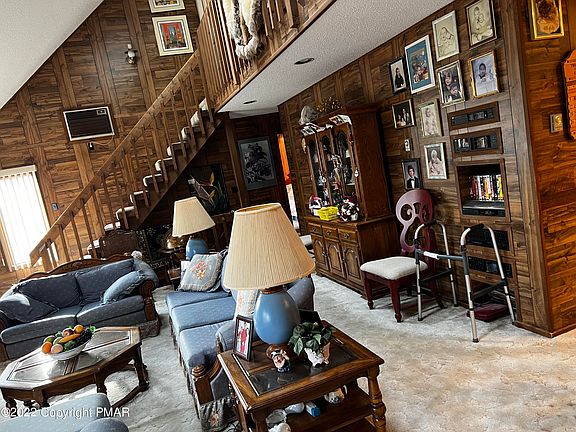 Large Contemporary on Double Lot... (3)Bedrooms (3)Full-Baths, Plus Large Loft, All-Season Room & Full Finished Walk-Out Basement. Large Living Room w/Wood-Burning-Brick-Faced Fireplace. Vaulted Ceiling to Loft Area, Glass Sliders to Front Deck.. Primary Bedroom (w/Outside Balcony) Walk-In Closet, Private Full-Bath Adjacent to Loft Area on Upper Level.. (2) Additional Guest Rooms on Main Floor w/Adjacent Full Bath... Full-Finished Walk-Out Basement on Lower Level Dry-as-a Bone.. Large Living Area, Spa Room w/Jacuzzi Tub and Steam Sauna.. Lots of Outdoor Living, All--Season Room, Large Rear Deck w/Sunken Hot-Tub Area, Front Decks. All On a Double Lot w/Walk-Ways, Outdoor Gazebo... Just needs a Little TLC... Paved Drive