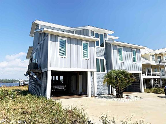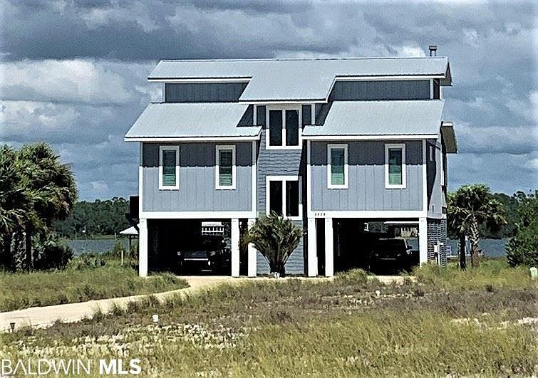 This spectacular custom built Lagoon Front home is now on the market in Gulf Shores! The attention to detail in this one of a kind home will capture your attention as soon as you open the door. Three bedrooms, 3 and 1/2 baths, plus an additional bunk room with built in bunks on the 2nd level. Split floorplan with the Master on the main level and additional bedrooms up. 2360 sqft of luxury and high end upgrades make this home beyond special. GOLD FORTIFIED and built in 2017, it features hardie plank siding, metal roof, pier and covered dock, and an amazing outdoor living space complete with a television and woodburning fireplace. What a great place to watch the game! This home was custom built to a higher standard and it shows. The detailing is amazing- cascading doors open the great room to the outside with an incredible disappearing wall. The giant 40' x 13' deck space is completely screened and floored with Trex decking. Every door in the home is a custom built 8' door made with natural raw cedar. The gourmet kitchen has top of the line stainless appliances from LG, Bosch and Miele. Each custom design finish completes the look with a glass hood, herringbone glass backsplash, a pot filler over the gas range, and a huge walk-in pantry large enough for a second refrigerator and groceries for the year. The porcelain tile wood look flooring and custom colors throughout are the perfect compliment of each other. The Master ensuite also overlooks the magnificent Lagoon views. Double walk-in closets, a floor to ceiling tiled shower with 2 rain shower heads, separate jacuzzi tub, double vanities complete with outlets in the drawers. Even the custom cabinets use every inch of space wisely. This home is located in tranquil Lillian Callaway Subdivision- a low density area of the beach that is exclusive to single family homes. Quiet enough to be the perfect year round home, but perfect layout for weekly rentals as well.