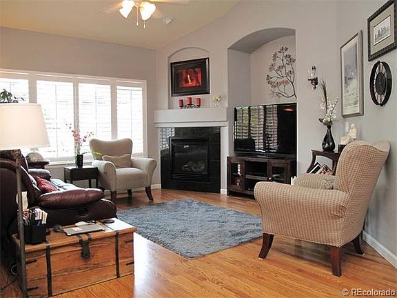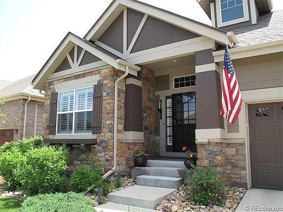 Low maintenance, ranch home in desirable Star Pass. Meticulously maintained, quick move in with plantation shutters and oak flooring throughout main floor. Kitchen open to great room with gas fireplace and vaulted ceilings. New carpet in master bedroom. 2nd Bed or office on main floor. Exceptional home and features lower level with huge family living space, wet bar, media room including 100" HD Screen, projector and surround sound. Additionally a large bedroom, full bath and storage. Fabulous outdoor living including gas grill, tiered perennial beds with water feature, trex decking, outdoor speakers. Energy saving solar panels. Wonderful location close to parks, walking trails, shopping and convenient access to DIA.