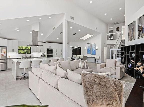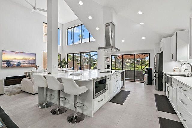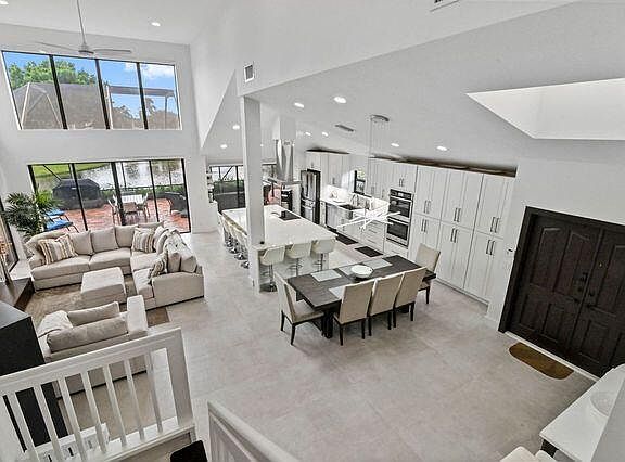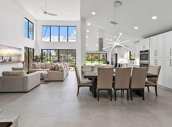 OPEN HOUSE CANCELLED -EXECUTED CONTRACT 9/13/24This stunning, lake-front, 3,165 total SF home in Boca Pointe has been completely transformed, gutted to the studs, and move-in ready! Everything is brand new! Featuring 4 bedrooms and 3 full baths, this beautiful property boasts porcelain floors, an open cook's kitchen with an 11FT quartz island, all Bluetooth-enabled appliances, soft-close cabinets, satin nickel hardware, separate beverage fridge, purified water system, electric/remote control blinds, and custom closets throughout.The luxurious master suite is on the main floor and includes a Whirlpool tub and separate shower, both with jets and also a private office. The upper level offers 2 spacious bedrooms and a bath. Come see this spectacular home easy access. The screened-in patio overlooks serene lake views, offering a perfect spot to unwind. This home comes fully equipped for your comfort and enjoyment!