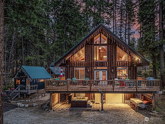 A timeless mountain chalet awaits in Alpine Tracks, Fish Lake’s idyllic 4-season community. This warm, wood-filled cabin is simply oozing with rustic charm. Discover an oh-so-cozy interior featuring an open kitchen/dining/living area with a soaring cathedral ceiling and French doors that open to a massive, wrap-around sundeck ready to host large gatherings in style. Enjoy the convenient main-level bed with a full bath and the upper loft with 2nd bath. A lower-level family room leads to the covered hot tub. Need ample overflow sleeping space? Your quintessential bunk room awaits. PLUS, the community's private beachfront, dock, and BBQ area is located directly across the street. Make this your picture-perfect mountain hideaway!