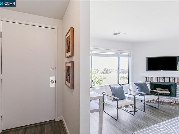 Welcome to the Terraces. A quiet townhome community nestled in the hills of Benicia. This home is an end unit and adjacent to the park. Enter this home and step down to the living room which features a brick fireplace and large picturesque window. The kitchen looks out onto the park. Kitchen features gas range, microwave, dishwasher, refrigerator and plenty of storage. Dining area features large window overlooking rear deck and hills/open space beyond. 3 Bedrooms and 2 full baths upstairs. Primary bedroom is large with lots of storage. Secondary bedrooms also feature great closet storage. Laundry room is located on main floor with washer/dryer and gas or 220 electric available. Detached 1 car garage plus parking space and additional guest parking available. Convenient to shopping. HOA includes water and trash.