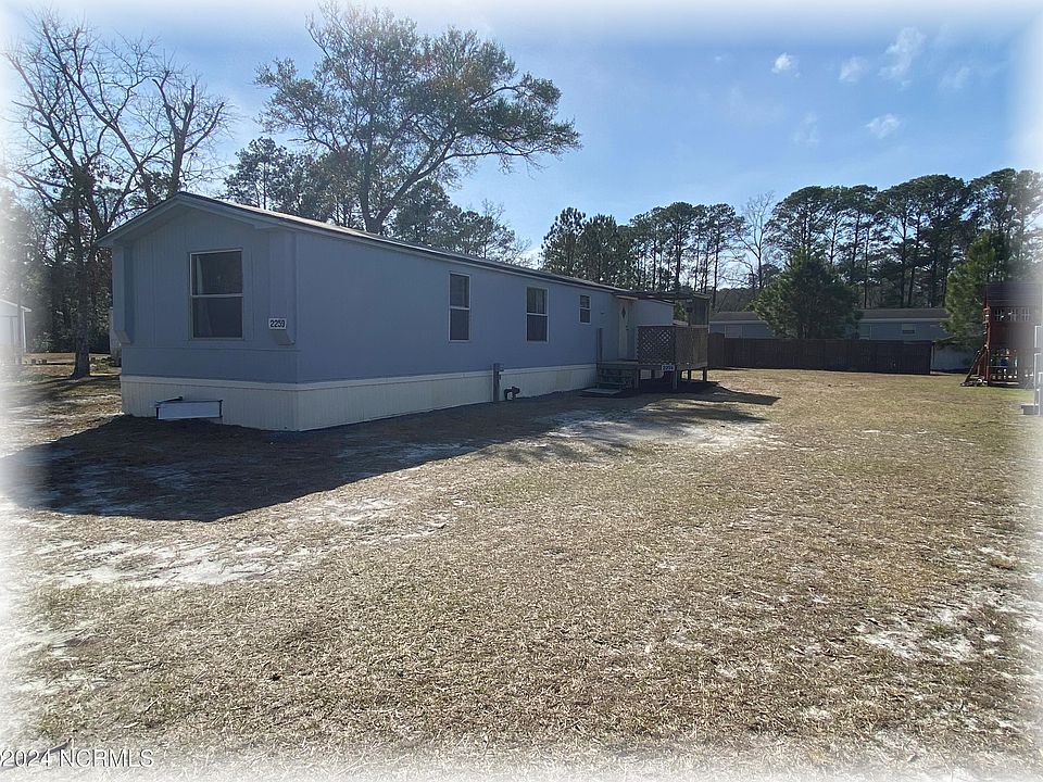 Manufactured home with 3 bedrooms, 2 full baths and spacious yard to accommodate the family. Affordably priced for today's market. New carpet and vinyl flooring, paint and all appliances included. Plenty of parking for the boat or camper. No HOA. Centrally located between Wilmington NC and Myrtle Beach SC and just minutes to Holden Beach.