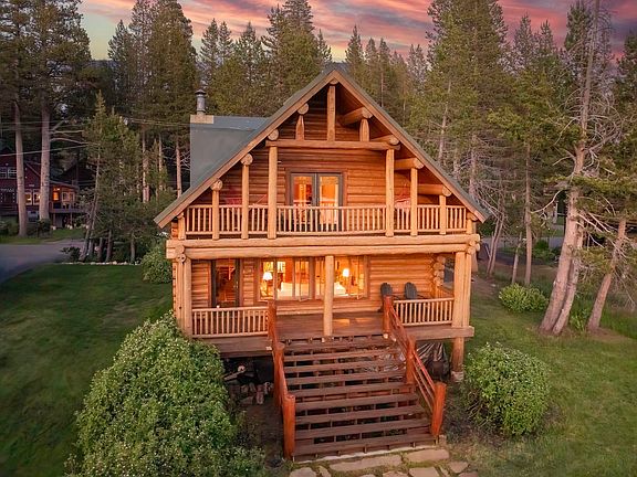 Welcome to a truly magical cabin where time slows down and the natural beauty of Serene Lakes takes center stage. Nestled right on the water’s edge, this rare lakefront retreat features its own private pier and sandy beach—offering the ultimate setting for relaxation, adventure, and year-round memories. Step onto the expansive covered back deck or the private upper balcony and soak in breathtaking views of the shimmering lake, with the majestic Sierra Nevada mountains rising in the distance. Lakefront homes on the swimming lake are exceptionally scarce, and this charming 3-bedroom, 2-bath log cabin is one of the few that combines timeless rustic character with modern comforts in an unbeatable location. Inside, you’ll find a warm and inviting space filled with rich wood tones, natural textures, and oversized windows that frame the lake and flood the interior with natural light. Gather around the cozy wood-burning stove after a day of skiing or exploring the outdoors, and enjoy the practical convenience of the air-lock entry mudroom—perfect for all four seasons. Upstairs, the primary bedroom offers a peaceful sanctuary where you can wake up each morning to stunning lake views right from your bed. Unwind on the private lakeside balcony, where the gentle sway of the hammock and the sound of water lapping at the shore will make it hard to leave. This exceptional lakefront getaway is more than just a home—it’s an invitation to slow down, connect with nature, and create unforgettable memories in one of the most enchanting settings in the Sierra.