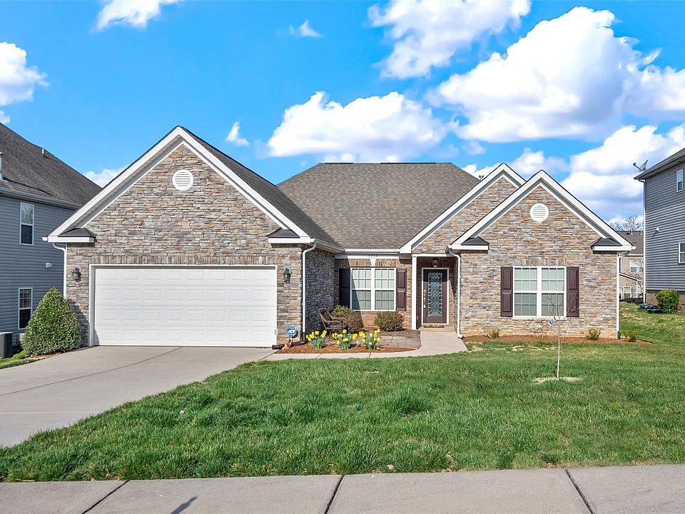 Desirable 1.5 story home located close to everything! FRESHLY PAINTED & NEW CARPET. 4 bedroom, 3 bath home. 2 Bedrooms, a full bath, & Primary suite (Bed 3) are located on the main level. The Upper Level has a spacious Bonus/4th bedroom, w/ walk in closet, & full bathroom. Fenced Backyard that is beautifully landscaped to convey a picturesque "park like" setting. Entertain guests on the oversized concrete patio equipped w/ a remote controlled retractable awning! The Kitchen boasts granite counter tops, SS appliances, a brand new electric cooktop & overlooks the Great Room & Breakfast Area. 2 car garage. SOLAR PANELS to reduce the monthly bills. Centrally located between the Community Pool & Playground that are on the same street & centrally located between 485,77,& 85 w/ an easy commute to Charlotte. Washer/Dryer & Refrigerator Convey