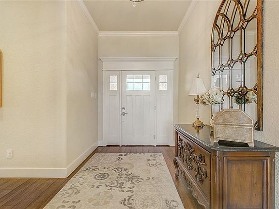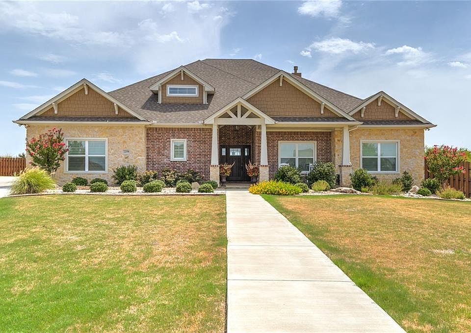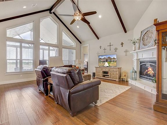 Beautiful Craftsman style home built on an over sized lot. The living room offers bamboo wood floors, vaulted wood beamed ceiling, and custom gas fireplace. The kitchen island features a single slab of granite and additional seating. Stainless steel appliances, custom white cabinets, gas cook top, and double oven are just a few of the amenities in the kitchen. You will love the outdoor kitchen and living area with a fireplace. The master suite offers dual vanities, large walk in shower, and a freestanding tub for relaxing. The entry closet doubles as a storm shelter. There is an abundance of storage and an over sized garage. Foam insulation and tankless water heater are bonuses for energy efficiency.