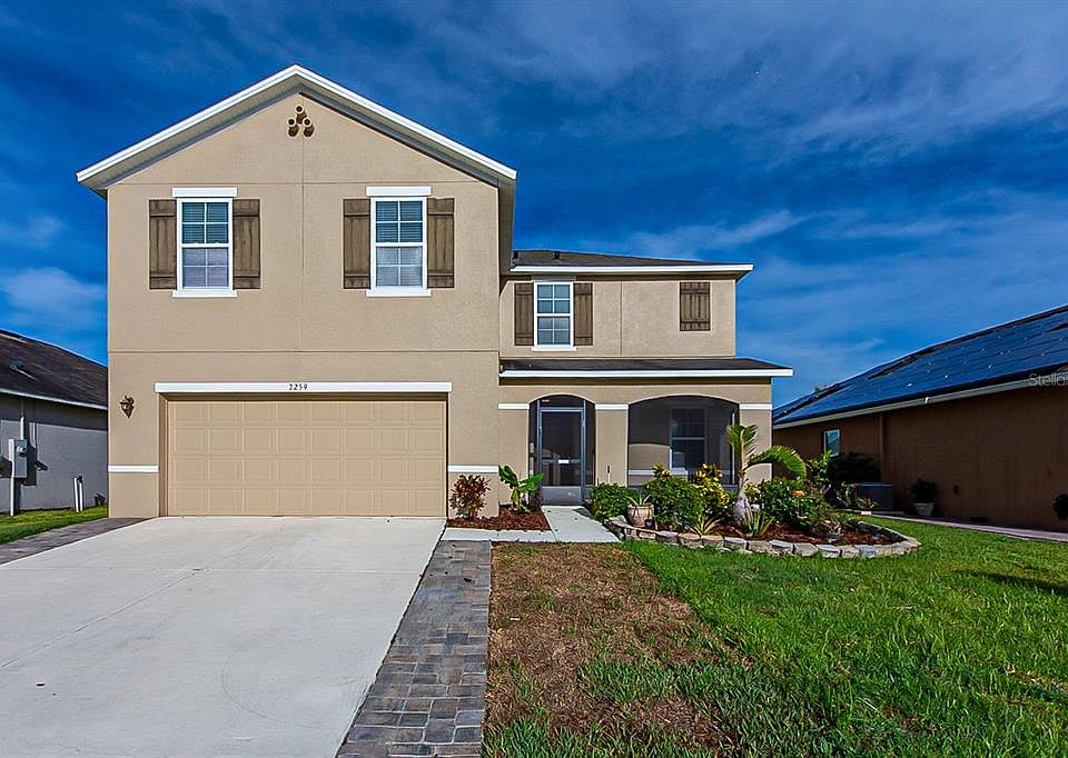 One or more photo(s) has been virtually staged. This 4 Bedroom, 2.5 Bathroom, 2 Car Garage, 2 Story home is new family ready. The 1st floor is amde up of the Living/Dining Room Combo, Kitchen, 1/2 Bathroom and the Garage. The 2nd floor is arranged in a Split Floorplan style to allow privacy for the owners. It has the Master Bedroom(with a Walk-In Closet), Master Bathroom, the remaining "Guest" Bedrooms, the "Guest" Bathroom and the Laundry Area. The Front Porch is under roof and has been screened in.