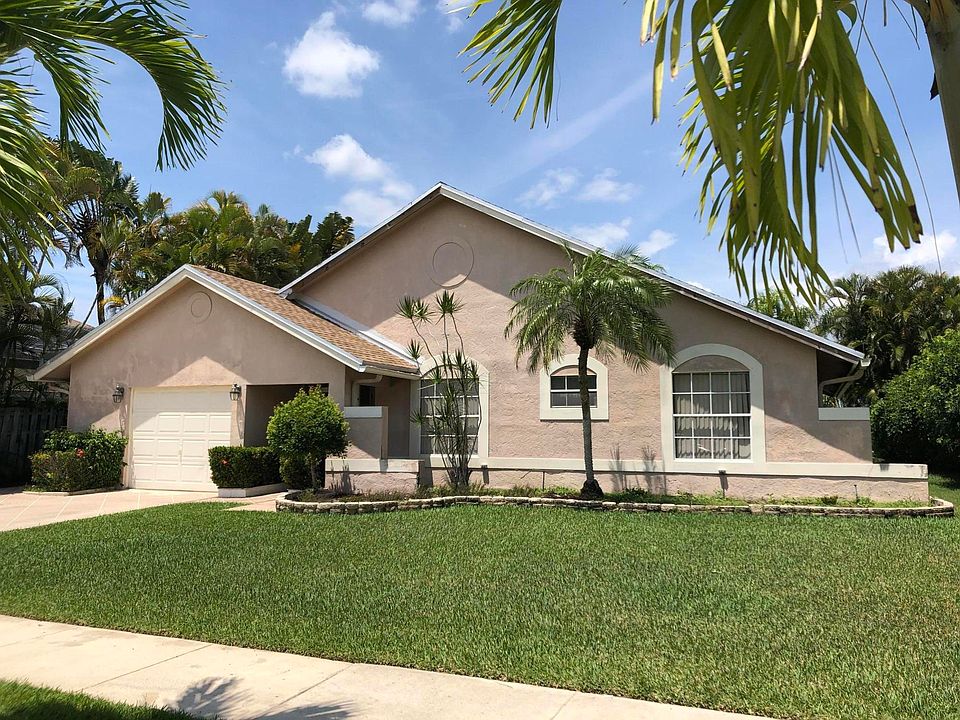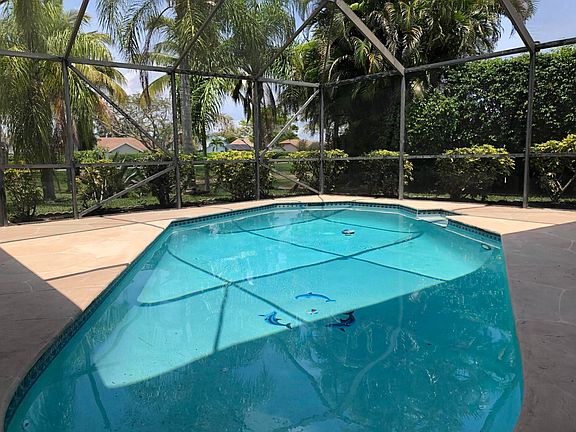 3 Bedroom, 2 Bath Lakefront Pool Home in the desirable neighborhood of Boca Winds. Split bedroom plan, light and bright. Screened in pool with custom deck texture. Recently diamond bright. NEWER ROOF 2016 and A/C 2017. Quiet cul de sac street. Walk or bike to 3 ''A'' rated schools. Low HOA. Minutes from South County Park. This home needs some work. No kitchen at this time.