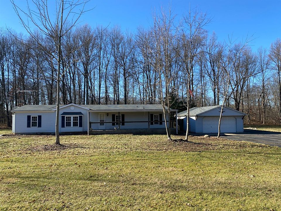 Immediate Possession! 3 bedroom, 2 bath manufactured home with new roof and hvac, large living room and MBR suite, covered front and rear decks, 2 car detached garage sitting on a 2 acre lot with city water.