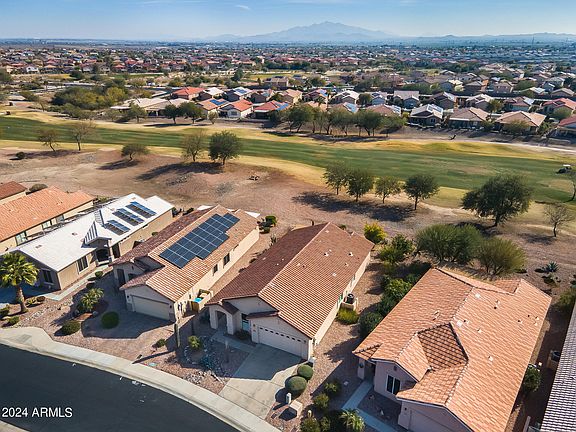 Rare opportunity to own a highly upgraded, turn key, single level home located in the sought after Sundance Active Adult Community. One of the largest floor plans offered, this gorgeous home is nestled on the scenic 18 hole championship golf course and shows true pride of ownership. Cooking is a delight in this exquisite kitchen, providing plenty of cabinet and counter space with a custom quartz peninsula, stainless steel appliances, wine fridge, pantry, and is equipped with recessed lighting. The primary bedroom offers a large walk-in shower with new door frame, dual undermount sinks, separate tub, toilet room, and walk-in closet. Don't forget about the extensive rear stone patio that's perfect for entertaining complete with outdoor lighting, ceiling fan, and low-care landscape, all the while overlooking the 10th fairway. This semi-open floor plan with split bedroom layout has a bonus den/office that could be converted to a bedroom if desired. No carpet is to be found as 18" tile and vinyl plank flooring are throughout the home. Additionally, the interior boasts new quartz in the bathrooms and living areas, new top down blinds on every window with exterior sunscreens, recessed lighting, as well as fans in every room. This charmer of a home has been lived in lightly due to its seasonal owners and has been recently painted inside and out. The oversized garage has cabinets installed as well as a 3 stage water filtration system that provides quality water to every faucet in the house. The highly desirable 55+ Sundance Adult community is known for its vibrant rec. center with a large workout area, pickleball, tennis courts, heated lap pool and spa, ballroom, and more. Along with close proximity to the freeway access, Costco, and the Sundance Towne Center this home and community has it all!