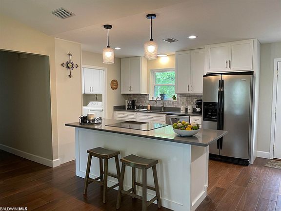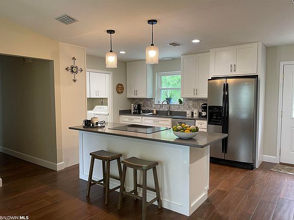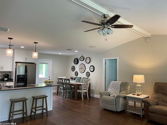 Completely renovated 1435 sq foot 3/2 home with a large in ground pool. You are located close to everything the Gulf Coast has to offer yet nestled privately on over three acers of land on peaceful Sandy creek. The home has quartz countertops and an open kitchen, dinning, den combo. The split floor plan in this cozy home still allows for privacy. This home is perfect for someone who wants privacy and a really a great shop. The shop has over 1600 sq feet under roof and 1200 sq feet heat and cooled. The Shop also has a hydraulic lift that will convey. Brand New heat and air in the main house. The house is in the county and there is no HOA.