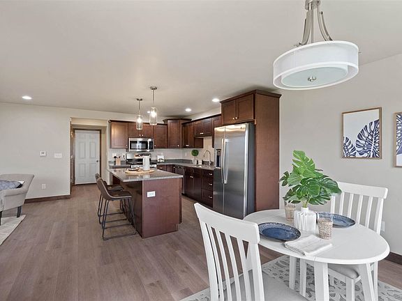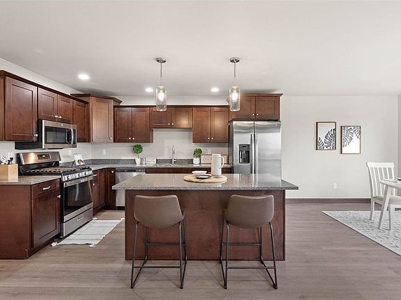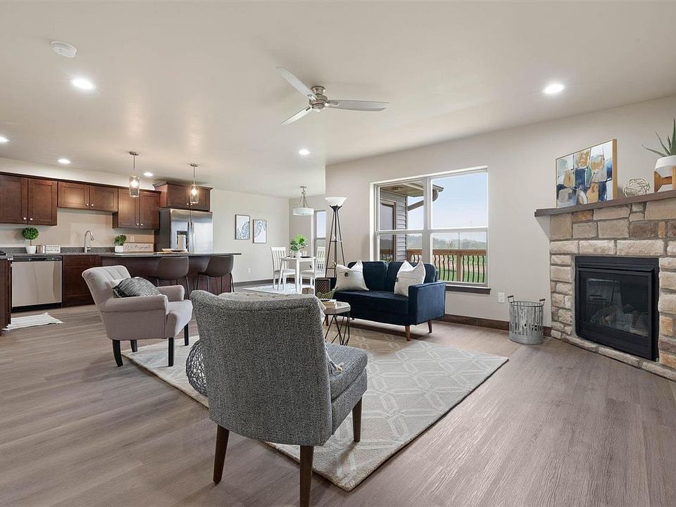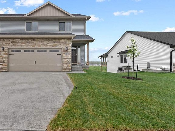 So much to love in this bright 2 story walkout zero lot featuring 4 bedrooms & 3.5 bathrooms. Enjoy the nature & views! Main floor features an inviting LR with gas fireplace & stone surround, kitchen with maple cabinetry, island & stainless appliances. Dining area leads to a large 15 x 8 deck with wooded views. Convenient half bathroom & mudroom off the 2 car attached garage. LVP flooring throughout the main. Upstairs you will find 3 bedrooms, 2 full bathrooms a laundry room and a storage room/den. Primary bedroom with cathedral ceiling, large walk-in closet and primary bathroom with double sinks and shower. Finished walkout lower level includes a spacious family room, 4th bedroom, 4th bathroom & large storage room. Located in a desirable new development, Kalona Southtown Area. Close to nature trails, golf course, ponds, beach, parks & more! Enjoy living in a new kind of development immersed in nature.