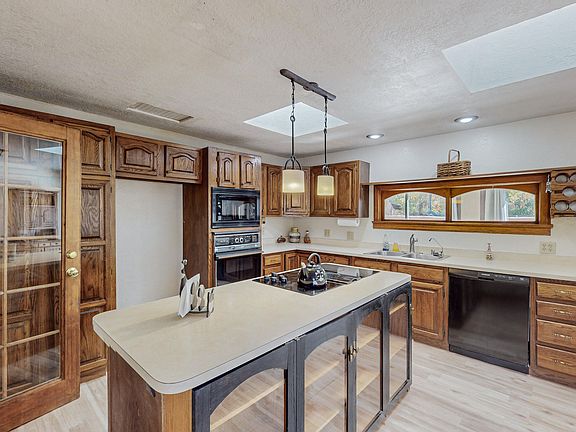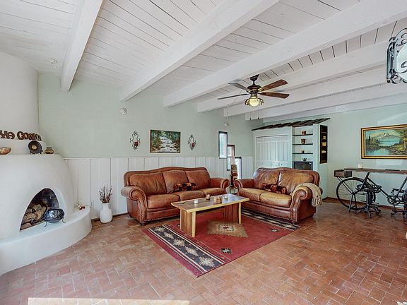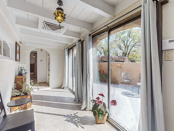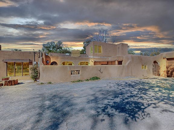 The Quaint Pueblo Style Home in the Desired North Valley: Situated on a generous half-acre lot, this charming Pueblo Style home welcomes you with a beautifully landscaped patio adorned with a soothing water feature. The gentle sound of the waterfall is sure to calm your spirit after a long day. Inside, the home is bathed in abundant natural light. The spacious living area boasts a kiva gas fireplace, creating a cozy ambiance. The kitchen offers an open country feel, making it an ideal space for cooking and gathering. The primary bedroom features a private patio, adding a touch of serenity to your everyday life. Additionally, there's a versatile loft space off the primary bedroom, perfect for use as an office, study, or for the artist in the family.