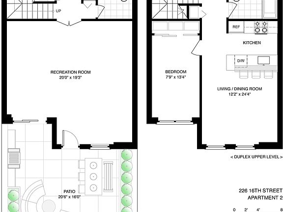 Welcome to 226 16th Street - your Park Slope retreat! This sun-filled, south-facing duplex condo offers the perfect blend of comfort, flexibility, and outdoor living. On the main level, you'll find a well-appointed kitchen featuring stainless steel appliances, granite countertops, and a breakfast bar, along with a full bathroom and a cozy living area that easily accommodates dining. The bedroom is bright and inviting, with large windows that let in plenty of natural light.