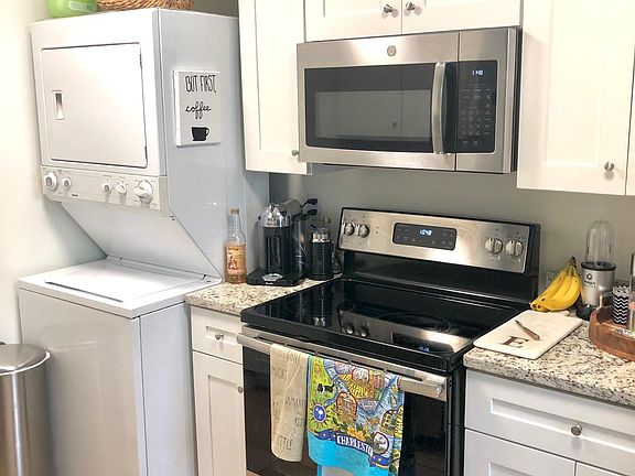 Beautifully updated two bedroom, one bathroom apartment just 2 blocks from MUSC in downtown Charleston. Wonderful location on the corner of Ashley Ave and Spring St, close to great restaurants and businesses. Apartment has been renovated with high end finishes including wood floors, open kitchen with shaker-style cabinets, granite countertops and stainless appliances. Apartment has central heating/air, ceiling fans throughout, and front load washer and dryer in unit. Exterior was recently painted and new energy efficient windows were installed. Second floor unit with safe, key-code entry. Off-street parking lot shared by tenants. Well-behaved pets allowed with one-time pet fee. Rent is $1800/month. Security deposit is one month's rent. Well-behaved pets considered with pet fee. Call or email Carson to set up a showing.