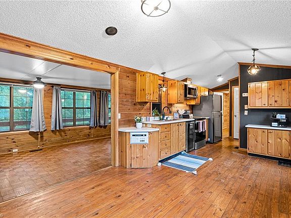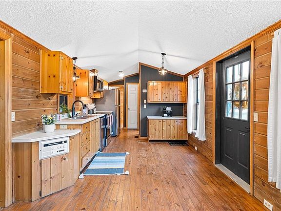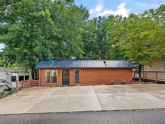 Welcome to the charming lakeside community of Badin Lake, where tranquility and natural beauty abound. Nestled amidst this serene setting is a remarkable log cabin park model home that exudes warmth and rustic elegance. Spanning two levels, the home features 2 bedrooms and one bath, spacious living room, kitchen & dining area on the main floor. The spacious basement (private entrance not accessable from interior main level) would make an ideal rental suite with its large bath, laundry hook ups, and large open space with endless possibilities for customization. The large back deck beckons you to relax and soak in the breathtaking views of the surrounding landscape.To cater to your storage needs, a wired storage building is located off the deck. Many updates less than 3 years old include metal roof, central hvac(main level) mini split (basement), samsung kitchen appliances, light fixtures, ceiling fans, new paint and concrete parking! Come experience lake side living.