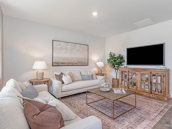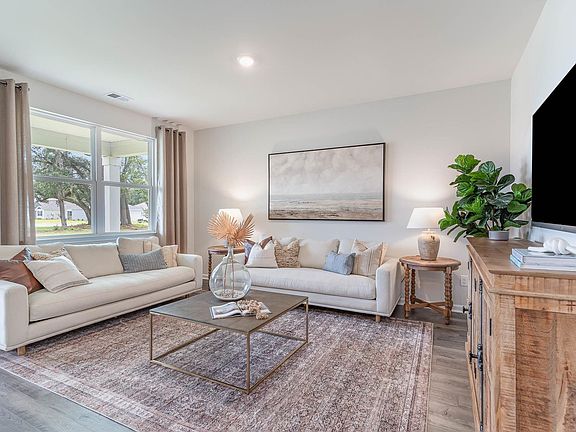 Our Aria plan is the perfect one level home with a beautiful, open concept living area for entertaining. The kitchen features granite countertops, oversized island, 36" cabinets, walk-in pantry, and stainless appliances including a side by side refrigerator. The large owner's suite is tucked away at the back of the home, separated from the other bedrooms, with double vanity, linen closet and 5' walk-in shower in the private master bath. Enjoy the coastal air on the spacious covered rear porch adding additional outdoor living space. This is America's Smart Home! Each of our homes comes with an industry leading smart home technology package that will allow you to control the thermostat, front door light and lock, and video doorbell from your smartphone or with voice commands to Alexa. *Photos are of a similar Aria home. (Home and community information, including pricing, included features, terms, availability and amenities, are subject to change prior to sale at any time without notice or obligation. Square footages are approximate. Pictures, photographs, colors, features, and sizes are for illustration purposes only and will vary from the homes as built. Equal housing opportunity builder.)