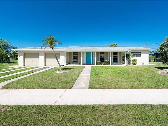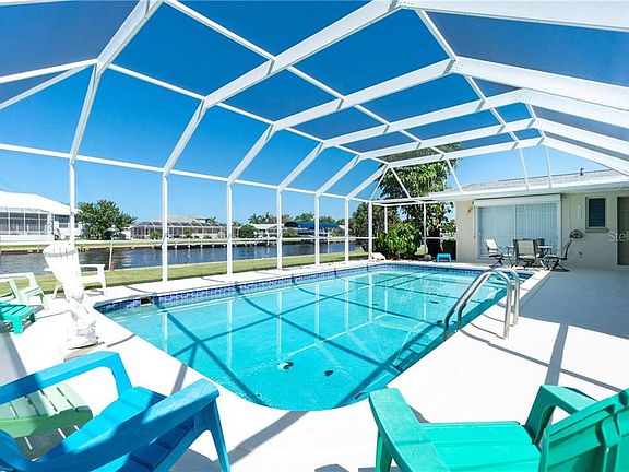 This is a sail boaters dream home only 6 lots to Charlotte Harbor which you can see from your backyard! Adorable 3 bedroom, 2 bath, 2 car garage pool home with beautiful Terrazzo floors through out the air conditioned space. Lots of floor to ceiling windows and sliders that overlook the spacious pool and lanai area as well as your sailboat canal. The Kitchen has been updated several years ago. Bathrooms are retro in wonderful condition with one as a pool bath too. This piece of paradise's exterior has been freshly painted giving it charming curb appeal. 100 feet of waterfront with concrete seawall and 45 ft concrete dock with power and water. H A/C is 4-5 years new and Hot Water Tank replaced in 2019. Large 2 car garage affords extra space for a work shop etc. Located in a quiet residential neighborhood and just minutes to the Port Charlotte Beach Complex with boat ramps, fishing pier, fresh water pool, tennis and so much more. US 41 is close by and only 5 minutes to historic downtown Punta Gorda with great restaurants, more water front parks and Fishermen's Village. Come see today and start living the Salt life!!!