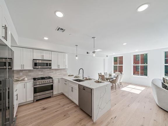 Unit 3 is a stunning 3-bedroom, 2 and a half-bathroom unit with 1480 sq ft of interior space and over 650 sq ft of private rooftop!! Both the condo unit and rooftop are accessed through a private elevator entry. Unit 3 also has a balcony, high ceilings and amazing custom closets. The kitchen is equipped with top-of-the-line Fisher Paykel appliances and waterfall edge Calacatta quartz countertops. The spa-like primary bath has a walk-in shower, double sinks and LED mirror. Unit also features - washer/dryer, tankless hot water heater, and NEST powered central A/C. You'll be close to restaurants, Whole Foods, parks, and all of the amenities that downtown JC has to offer! 226 Bay is a new 4 unit boutique building in Downtown JC just steps to the Grove St PATH. The building features a private backyard, rooftop deck, balconies, and Butterfly intercom system for packages and elevator access.