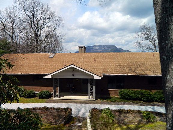 The signature view of the Whiteside Mtn rockface spanning from Highlands cliffs all the way to Devil's Courthouse from this rambling brick home. Almost 6 acres total,near level w/a spring, stream & approx 689 ft adjoining over 5000 acres of Nat'l Forest.A great opportunity to get a lot of enjoyable square footage w/3 bedrooms on the main floor.The property has tons of potential w/nice level grassy yards, mature azaleas & rhododendrons. Private well;2 car garage.Family rm. Convenient to Cashiers.