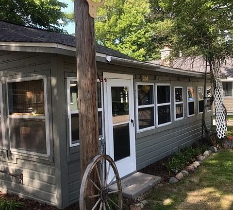 One cottage from the lake, this sweet "up north retreat" with lake views of Michigan largest inland lake - Houghton lake - 20,044 acres of fun on the water! Nostalgic knotty pine cabin will grab you the minute you walk in. Follow the new flooring as you tour the home, and notice the custom kitchen cabinets. The front porch area is gorgeous and set up for fun times while looking over the lake. The backyard will hold memories of family games and bonfires. Public road end access gives you the ability to go swimming and go out on the lake and enjoy this lovely setting. This location is amazing! Close to marina for boat mooring, and within walking distance to a restaurant/lounge as well as a party store - no need to go into town once you arrive at your new cabin for the weekend.