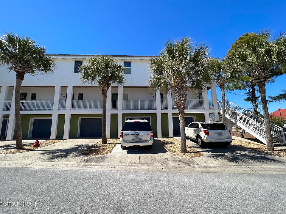 Life is better with a beachy-industrial vibe and an attached garage! On floor 3 you will find: 2-bedrooms; a full bath; and convenient laundry. Floor 2 is the guest entrance that allows access to: the open kitchen-living area (new kitchen appliances); 1/2-bathroom; walk-out balcony (with views of the pond and Grand Lagoon). Take the stairs down to the ground level and there is storage and a single car garage with many possibilities for use. Tasteful updating has just been completed and it shows! New flooring, paint, appliances and more! Amenities include a clean community swimming pool and meeting room. Private covered boat slips in Grand Lagoon provide you access to the Gulf of Mexico. The boat dock and lifts are available for rent separately through the HOA on a first-come, first-serve basis. Public beach is an easy 1/3-mile walk from this gated community. Shopping, Dining, and Entertainment options all within walking distance. Short-Term Rentals allowed!