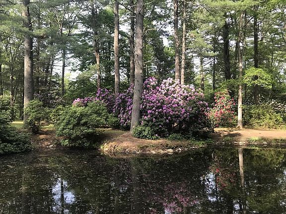 THE Winter home of the Boston public!!! Welcome to this wonderful garden paradise. With over 6 acres of flat, manicured gardens, a man made pond, hundreds of yards of walking trails, and abutting over 37 acres of wooded privacy, the property is a nature lover's oasis or a horse farmer's dream. The 1,680 sq. ft. embankment ranch is nicely situated on a knoll overlooking much of the property and a small barn with cleared pastures surrounding it. This property would be perfect for a small horse farm or for new construction with the current home used as an in-law. Allowance of $3250 for new flooring.