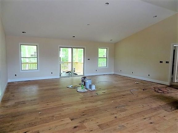 This open split bedroom floor plan features 1626 heated sqft with white oak hardwood floors, wide base trim, Art Palmer custom oak cabinetry, granite counter tops, island & snk bar, black stainless appliances, pantry, cathedral ceiling. Double vanity & walk in shower, Kohler Comfort High toilets, Delta faucets & walk in closet in master bdrm, Covered back deck overlooking small wet weather creek, walk in crawlspace, 2 car attached garage and paved drive.