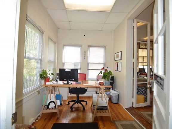 Well located and highly visible office space for rent on Broadway in Newport, Rhode Island. Three areas of work space, beautiful hardwood floors and lovely architectural details. Ideal for Attorney, Realtor, or other office. Large marquee sign already in place for your sign. Well maintained exterior, and plentiful street parking for your employees or clients. Entry porch makes a nice reception area and gets wonderful light. Extra heat for this room added in 2016 making it comfortable year round. Large main room works well as a conference room, or meeting room or shared work space. Medium sized office at the back of the building served as a private office. Small closet in this room. Half bath is private to this office, not shared with the rest of the building. Landlords are responsive and easy to work with.