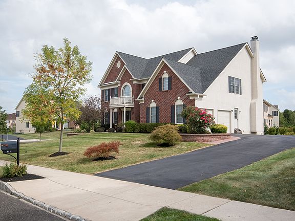 This gorgeous brick front colonial features a decorous exterior design, highlighted by tasteful landscape and manicured beds. Well maintained during ownership, this home is move-in ready. Enter into a two story foyer with hardwood floors and a dogleg staircase with second floor balcony overlooking the main entry. The main level features an open floor plan and high ceilings which adds to the spacious feel of this home. The kitchen is complete with hardwood floors that flow from the foyer, beautiful maple cabinetry with granite counters and large center island, pantry, and a breakfast room with sliders to the Trex deck overlooking the rear yard. Off the kitchen you will find a formal dining room with space for the large table and hutch that opens to the formal living room. The family room offers views of the kicthen and is highlighted by the gas fireplace with marble surround. Completing the main level is an office with French doors, a powder room with tasteful fixtures and the laundry room with access door to outside and the garage. The second floor is highlighted by a huge master suite with double walk-in closets, a full sitting room and a master bath with double vanity, Jacuzzi tub and a linen closet. There are three additional bedrooms, each with ample closet space plus a full hall bath and a linen closet. The full basement has 9 foot ceilings and offers room for expanded living space, if desired. Additional features include an extended driveway for more parking, upgraded Christmas lighting package, two retaining walls to accent the landscape. Minutes from Doylestown Borough, major travel routes, shopping and dining!