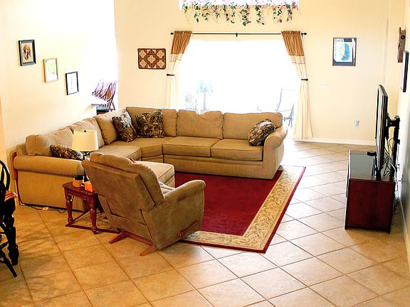 WOW! This is the property to see, it is ready for you to move right in. A three bedroom, two full bathroom home located in The Green at West Haven sits with no rear neighbors in a community that includes it all. The HOA covers Grounds Maintenance, Basic Cable, Tennis Courts, Community Pool, Private Roads and a Gated Entrance. And you can have a property that has it all, with a fenced in yard, gutters, reclaimed water and a screen enclosed lanai your exterior is everything you could ask for. As you enter the property through the beautiful decorative door you will find a large open entrance into the living/dining room and eat-in kitchen with breakfast bar and closet pantry. The kitchen includes stone countertops, stainless steel appliances and even a gas stove. At the front of the house there are two bedrooms with a full bathroom in between and both have volume ceilings. The master bedroom is in the back of the house and has a sliding glass door onto the lanai and volume ceilings as well. The master bathroom features dual sinks, a garden tub, stand up tiled shower and large walk-in master closet. Most of the interior of the property has fresh paint. A new A/C and heating system was installed in 2011, including a revamp of all the duct work. All that and an energy efficient tankless gas hot water heater. Come see this gem today!