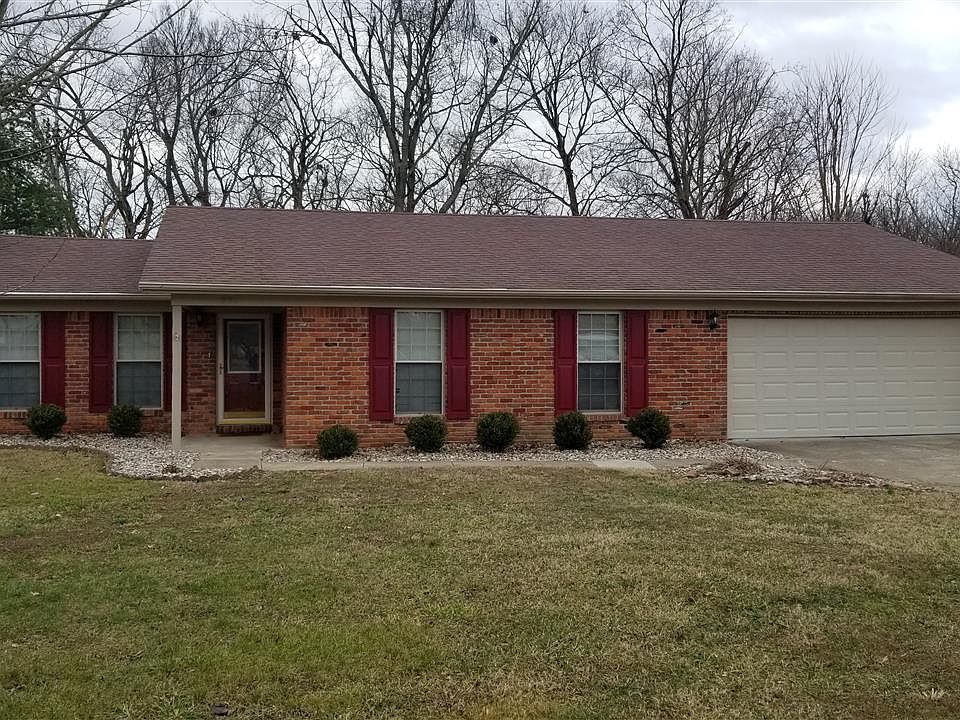 An absolute charmer with tons of character and many updates. Move in ready with brand new LVP flooring in the kitchen, dining, laundry and bathrooms. New carpet in the bedrooms. The home is freshly painted and the kitchen boasts a new tile backsplash and brand new appliances along with a breakfast bar. The large one level home without any stairs includes 2 separate family rooms, both with fireplaces and their own unique charm and large open space. The separate dining space sits just off the dining area. Decorative spindles and shiplap and brick accent walls give this home a quality style you will definitely appreciate. This home is conveniently located close to town but the lot provides wooded space perfect for play and privacy. The 2 car garage is extra deep giving an opportunity for workspace and storage. The shed also stays with the home. The home sits in an established neighborhood with access to woodland and Patriots parkway. Call to schedule your tour today.