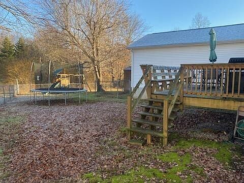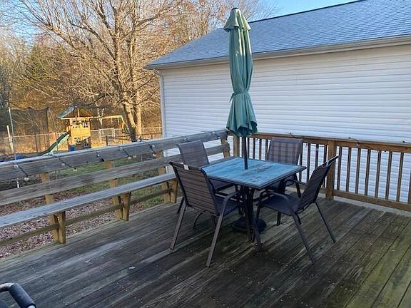 Great 3 bedroom 2 bath home with TONS of storage. Hardwood floors in Living room and hall, carpet in bedrooms. Ceramic tile in bathrooms. Master bath is HUGE. Very nice deck on back of home. Storage shed. The roof on the home is only 2 years old. Things that stay with home, outdoor patio furniture -trampoline - childs playground equipment outside- washer and dryer- stainless steel refrigerator. Call today to see this home.